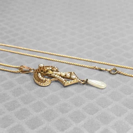 Preowned Yellow Gold Diamond and Seed Pearl Lavalier Pendant