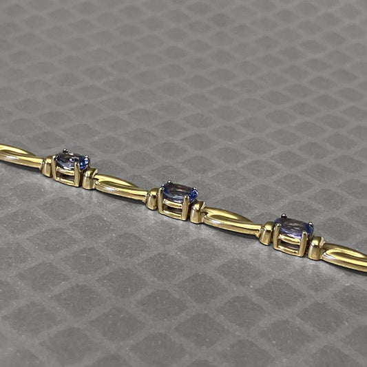 Preowned Yellow Gold Tanzanite and Diamond Link Bracelet