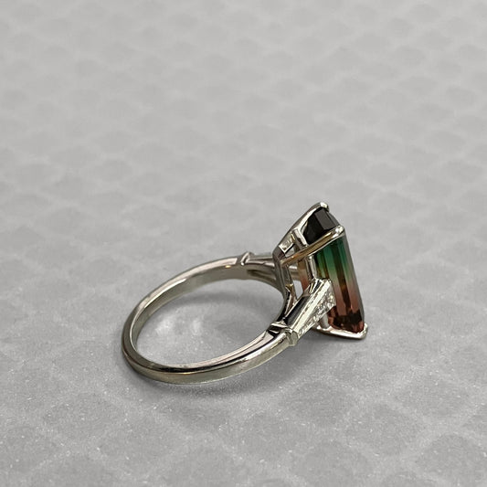 Preowned Platinum Bi-color Tourmaline and Diamond Ring