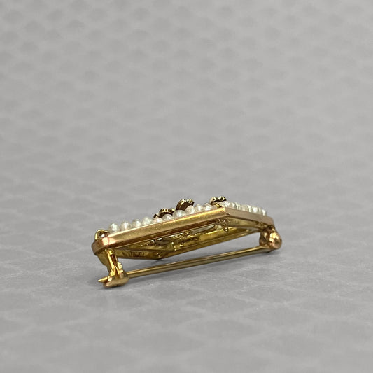 Preowned Yellow Gold Natural Pearl and Enamel Brooch