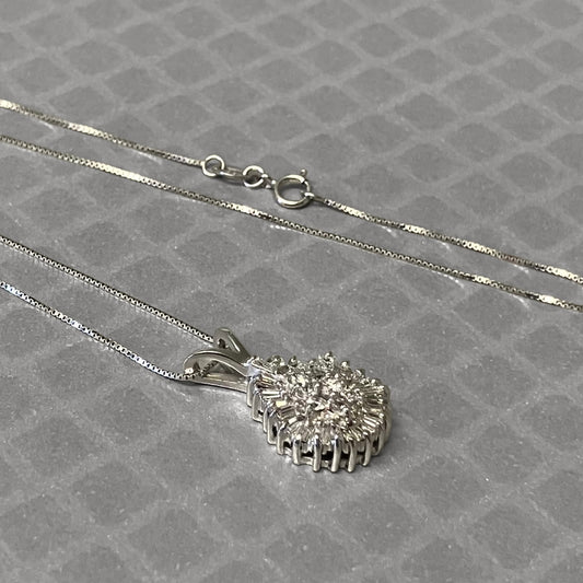 Preowned White Gold Round and Baguette Diamond Cluster Pendant