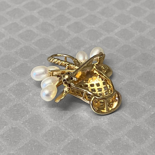 Preowned Yellow Gold Freshwater Cultured Pearl, Ruby and Sapphire Basket Brooch