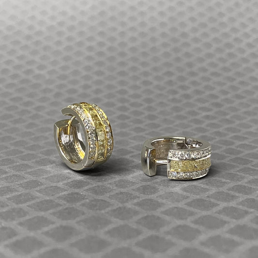 Preowned Yellow and White Gold Yellow and White Diamond Huggie Earrings