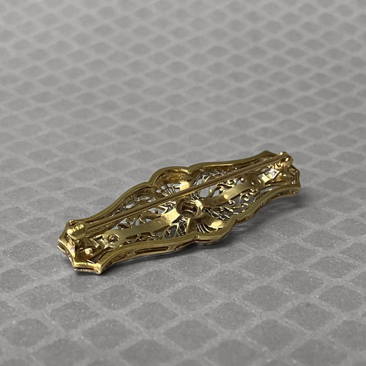 Preowned White and Yellow Gold Old European Cut Diamond Filigree Brooch
