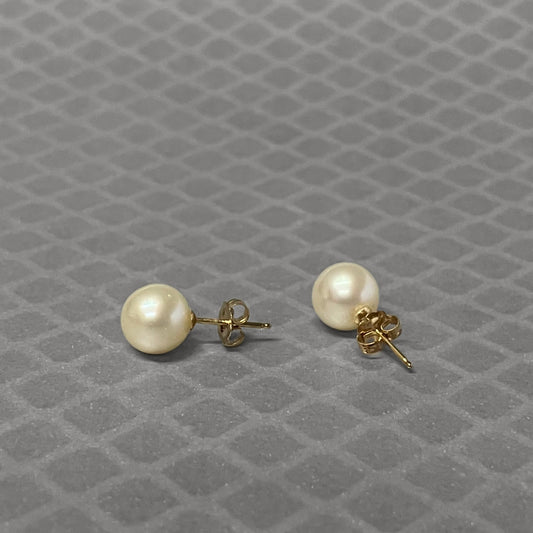 Preowned Yellow Gold and Akoya Saltwater Pearl Stud Earrings