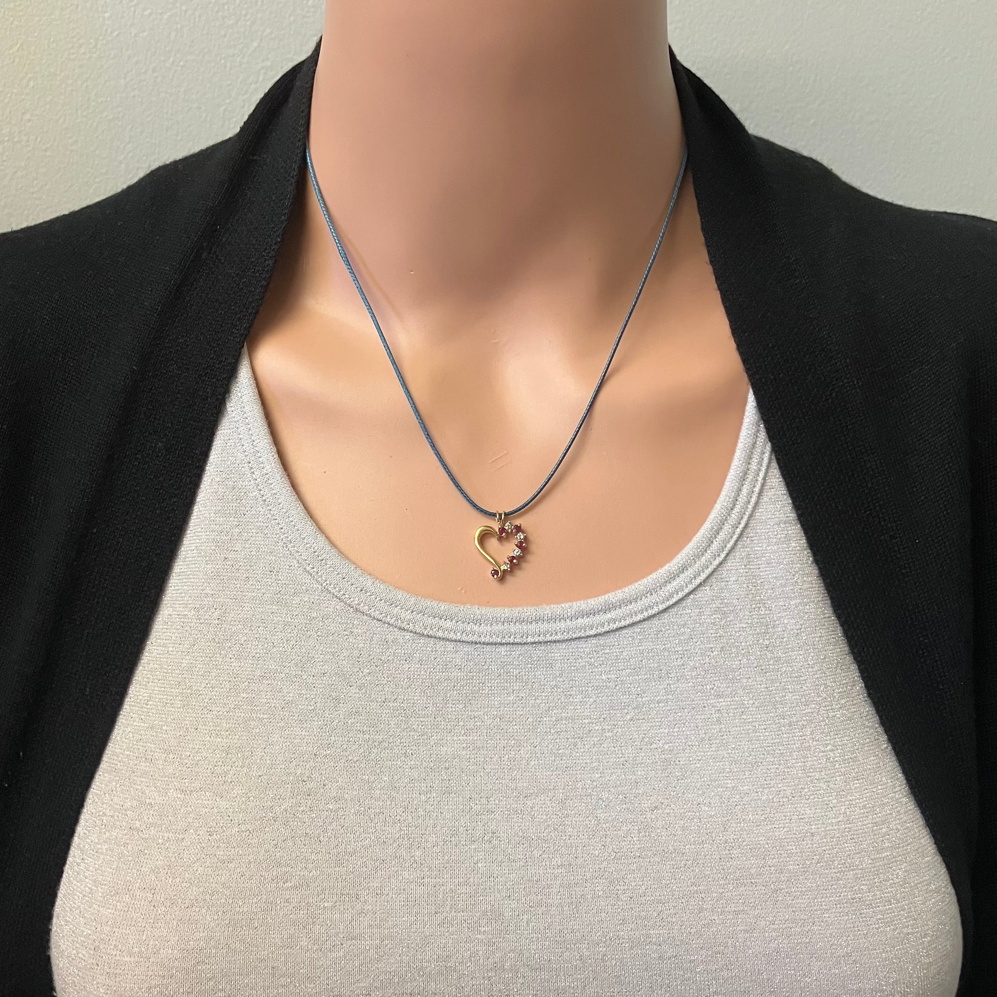 Both rubies and hearts have been symbols of love for centuries! This pendant combines both. There are a few diamonds for sparkle too! Chain not included so you can wear it with own.